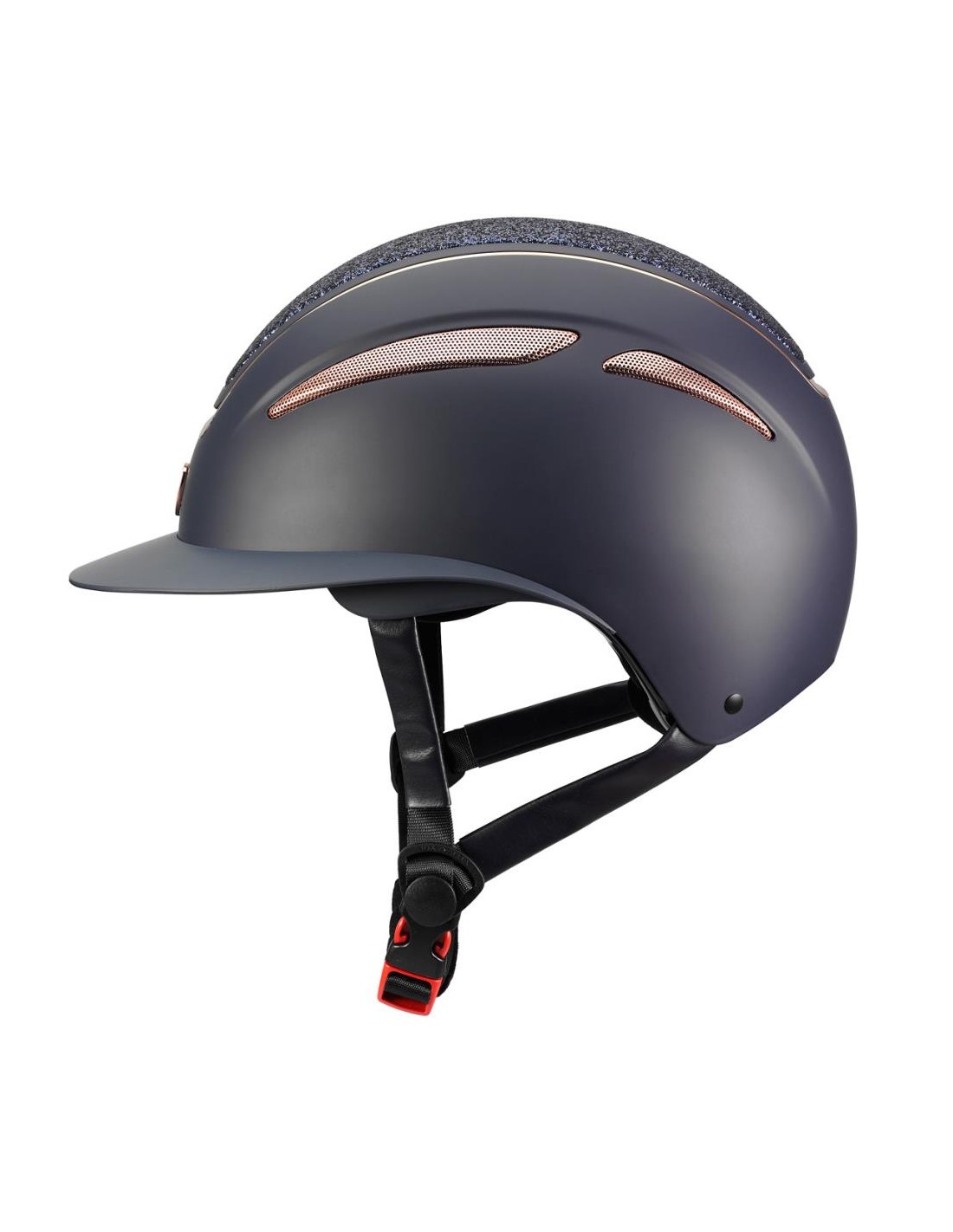 Profili lucidi oro rosa e nuova placca con glitter. Omologazione CE VG1 e certificazione TUV. Regolazione con strappo, visiera larga più avvolgente ai lati, doppie griglie di ventilazione laterali, fodera rimovibile e lavabile, regolazione micrometrica con rotella.