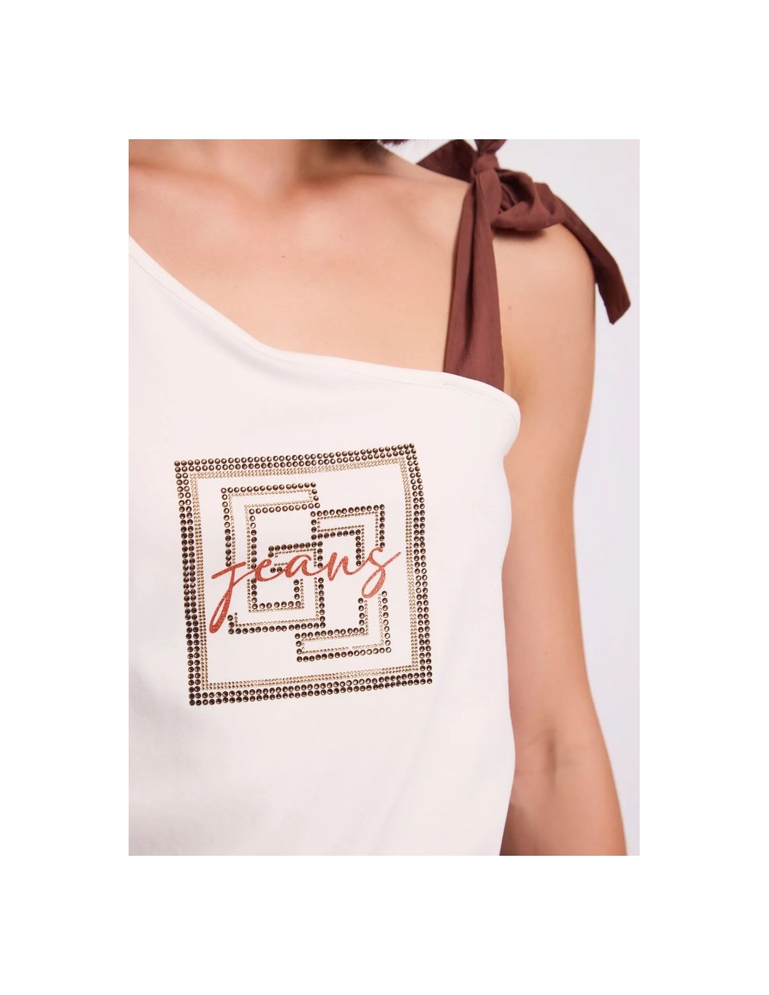 Gaudi Top monospalla con logo e strass